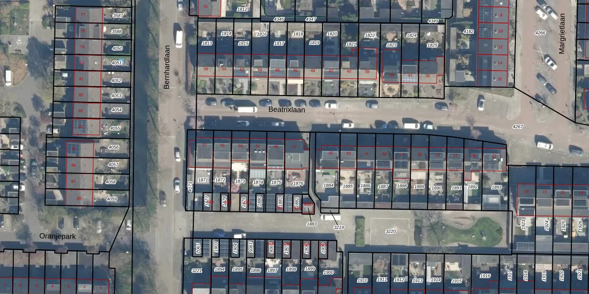 Beatrixlaan 47 is gelegen op kadastraal perceel HML01B1876. Deze kadastrale aanduiding is uniek en wordt gebruikt door het Kadaster om eigendomsrechten en andere zakelijke rechten vast te leggen. Het perceel maakt onderdeel uit van de kadastrale gemeente Harmelen.