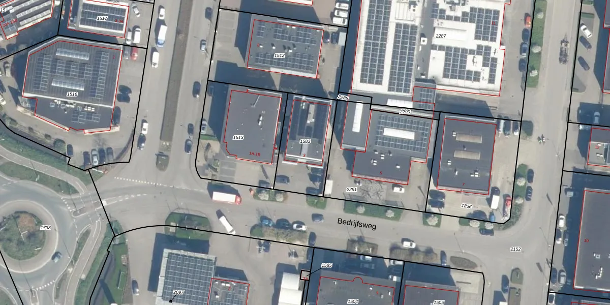 Het perceel waarop Bedrijfsweg 3 staat heeft een oppervlakte van 525 m². Dit is een groot perceel. De perceeloppervlakte wordt geregistreerd door het Kadaster. Gedetailleerde informatie over de maten van dit perceel kunt u vinden in het rapport Kadastrale kaart met maatvoering van Bedrijfsweg 3.