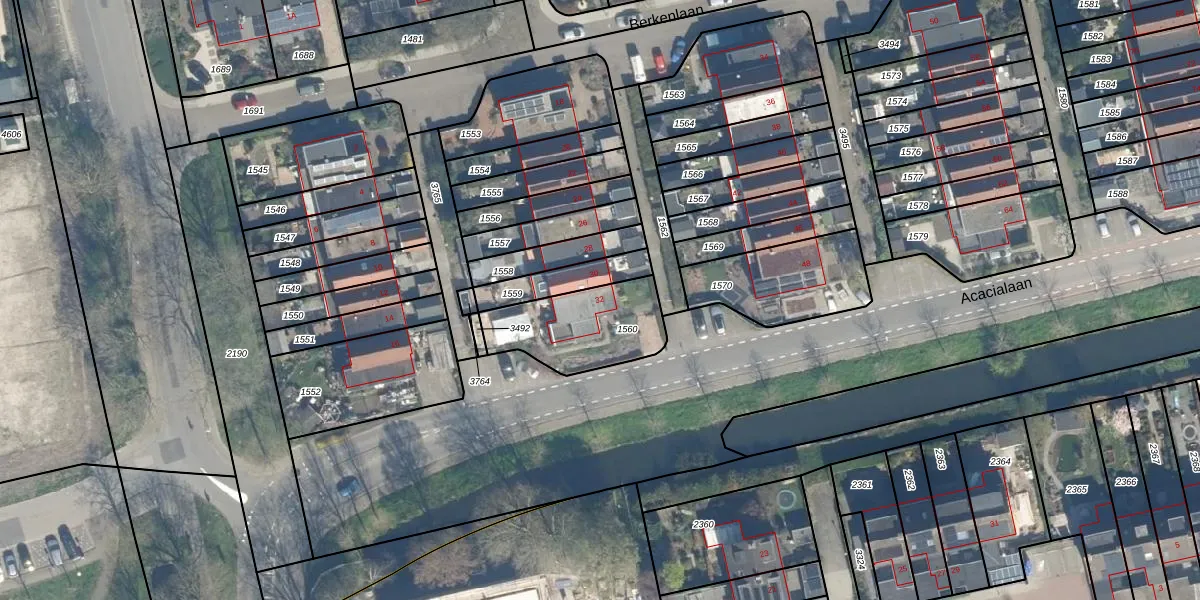 Berkenlaan 32 is gelegen op kadastraal perceel HML01B1560. Deze kadastrale aanduiding is uniek en wordt gebruikt door het Kadaster om eigendomsrechten en andere zakelijke rechten vast te leggen. Het perceel maakt onderdeel uit van de kadastrale gemeente Harmelen.