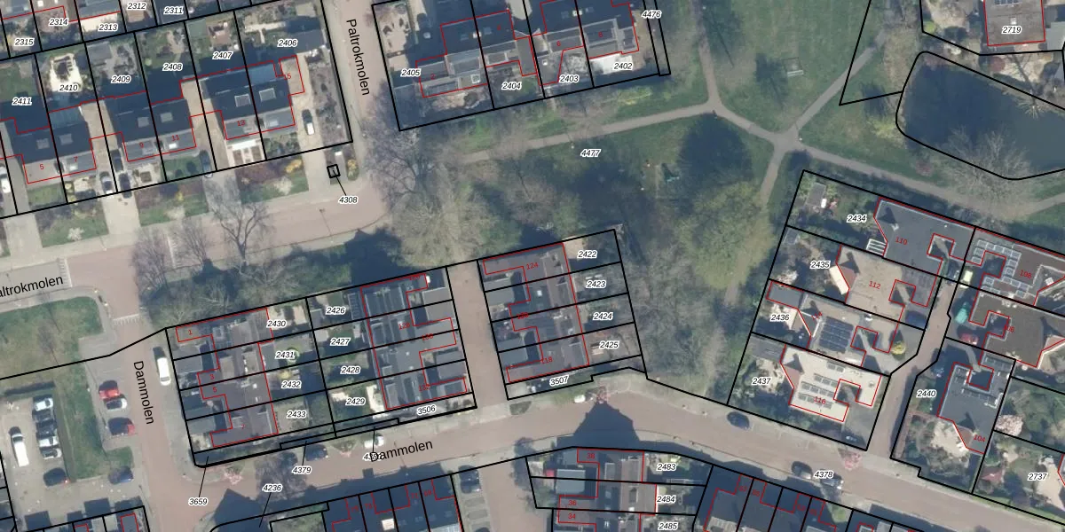 Het perceel waarop Dammolen 124 staat heeft een oppervlakte van 164 m². Dit is een middelgroot perceel. De perceeloppervlakte wordt geregistreerd door het Kadaster. Gedetailleerde informatie over de maten van dit perceel kunt u vinden in het rapport Kadastrale kaart met maatvoering van Dammolen 124.