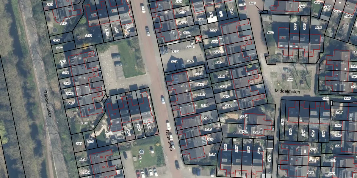 Het perceel waarop Dammolen 19 staat heeft een oppervlakte van 141 m². Dit is een middelgroot perceel. De perceeloppervlakte wordt geregistreerd door het Kadaster. Gedetailleerde informatie over de maten van dit perceel kunt u vinden in het rapport Kadastrale kaart met maatvoering van Dammolen 19.