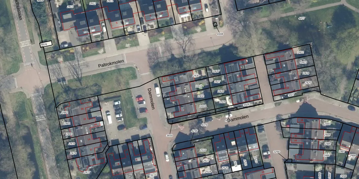Het perceel waarop Dammolen 3 staat heeft een oppervlakte van 154 m². Dit is een middelgroot perceel. De perceeloppervlakte wordt geregistreerd door het Kadaster. Gedetailleerde informatie over de maten van dit perceel kunt u vinden in het rapport Kadastrale kaart met maatvoering van Dammolen 3.