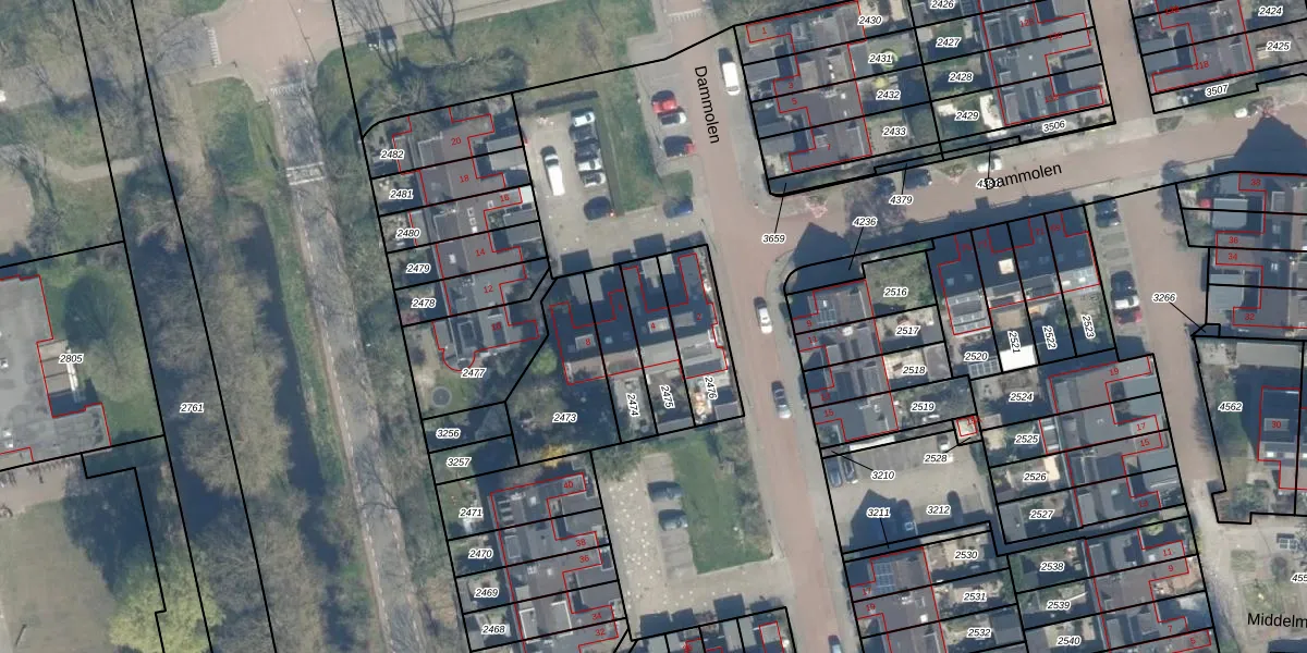Het perceel waarop Dammolen 4 staat heeft een oppervlakte van 155 m². Dit is een middelgroot perceel. De perceeloppervlakte wordt geregistreerd door het Kadaster. Gedetailleerde informatie over de maten van dit perceel kunt u vinden in het rapport Kadastrale kaart met maatvoering van Dammolen 4.