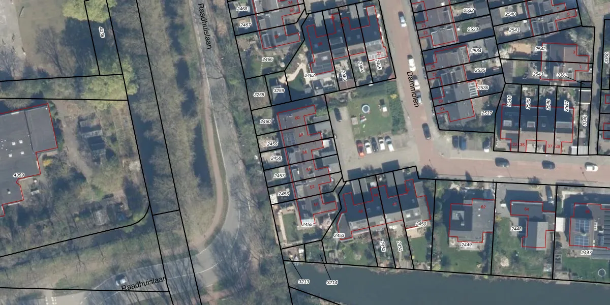 Het perceel waarop Dammolen 56 staat heeft een oppervlakte van 143 m². Dit is een middelgroot perceel. De perceeloppervlakte wordt geregistreerd door het Kadaster. Gedetailleerde informatie over de maten van dit perceel kunt u vinden in het rapport Kadastrale kaart met maatvoering van Dammolen 56.