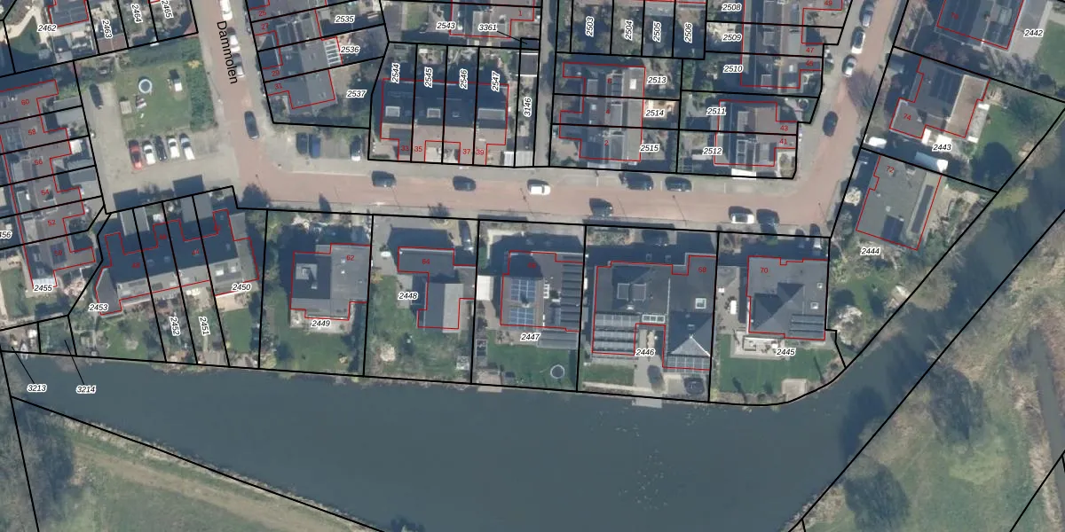Dammolen 66 is gelegen op kadastraal perceel HML01B2447. Deze kadastrale aanduiding is uniek en wordt gebruikt door het Kadaster om eigendomsrechten en andere zakelijke rechten vast te leggen. Het perceel maakt onderdeel uit van de kadastrale gemeente Harmelen.