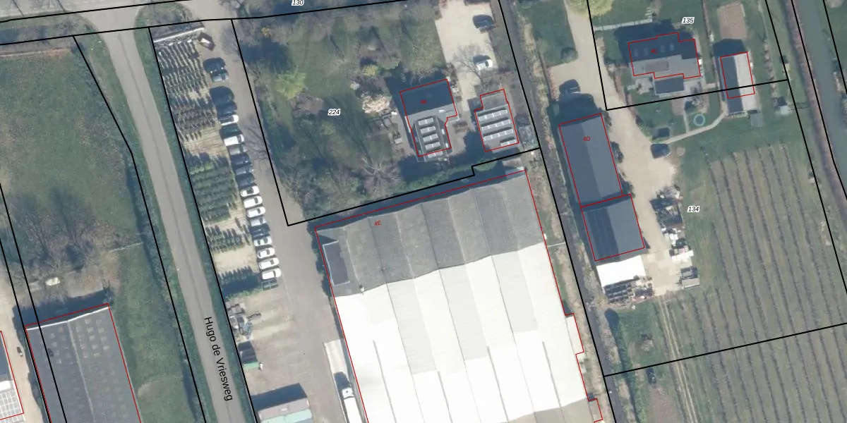 Het perceel waarop Dorpeldijk 4-E staat heeft een oppervlakte van 1,3 ha. Dit is een zeer groot perceel. De perceeloppervlakte wordt geregistreerd door het Kadaster. Gedetailleerde informatie over de maten van dit perceel kunt u vinden in het rapport Kadastrale kaart met maatvoering van Dorpeldijk 4-E.