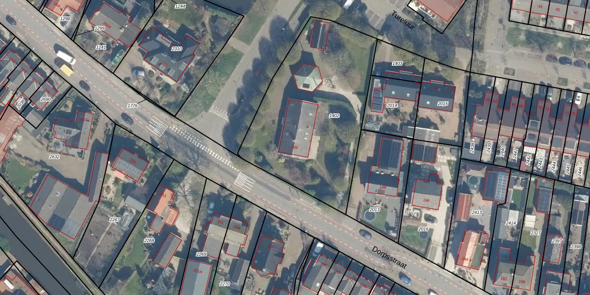 Gebruik de zoekbalk of klik op een perceel voor informatie over de adressen binnen dit perceel.