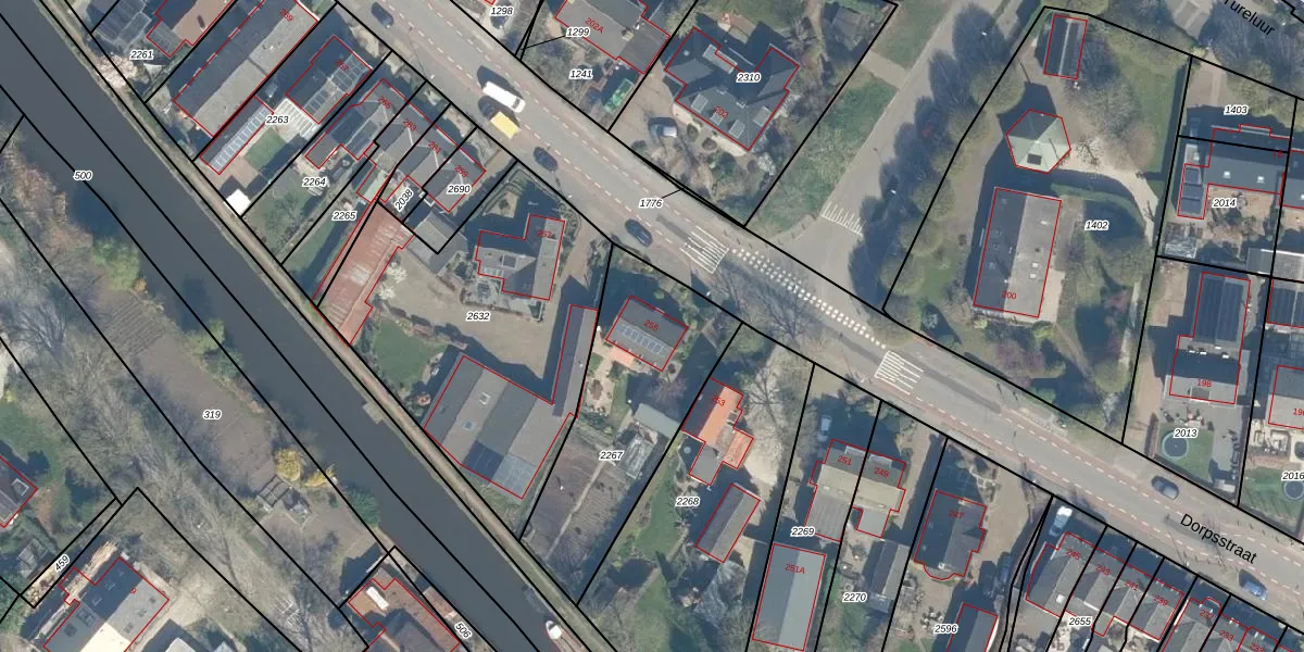 Gebruik de zoekbalk of klik op een perceel voor informatie over de adressen binnen dit perceel.