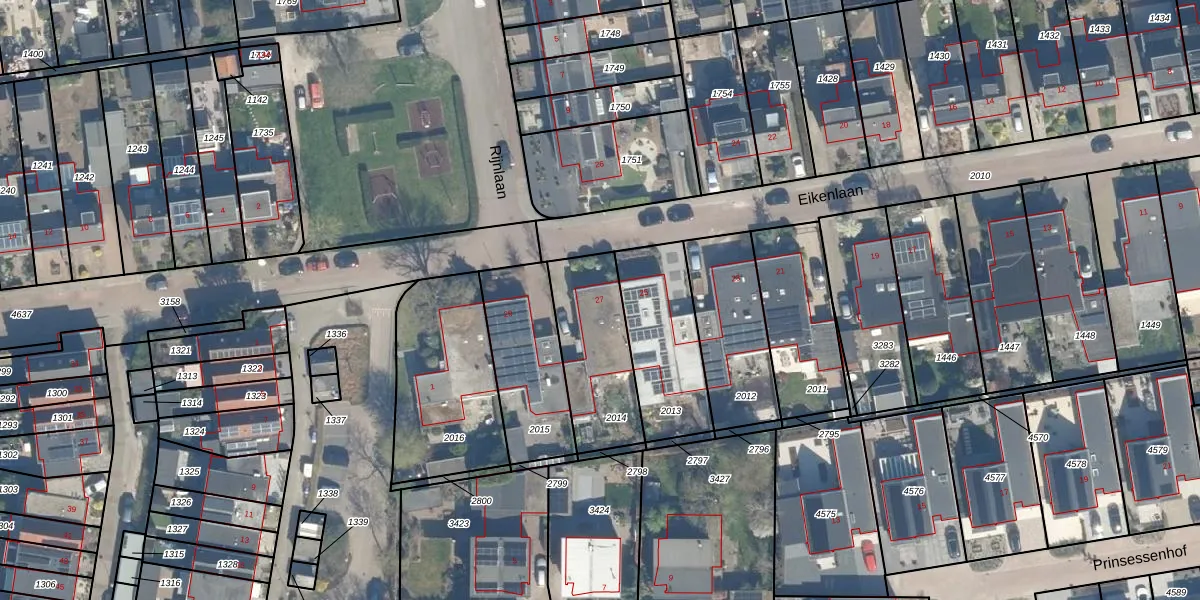 Het perceel waarop Eikenlaan 27 staat heeft een oppervlakte van 365 m². Dit is een groot perceel. De perceeloppervlakte wordt geregistreerd door het Kadaster. Gedetailleerde informatie over de maten van dit perceel kunt u vinden in het rapport Kadastrale kaart met maatvoering van Eikenlaan 27.