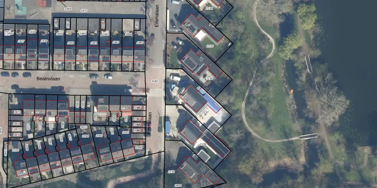 Gebruik de zoekbalk of klik op een perceel voor informatie over de adressen binnen dit perceel.