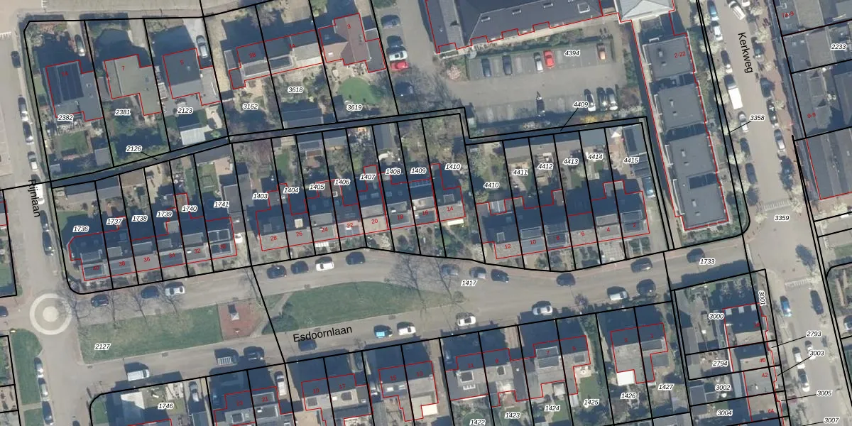 Esdoornlaan 16 is gelegen op kadastraal perceel HML01B1409. Deze kadastrale aanduiding is uniek en wordt gebruikt door het Kadaster om eigendomsrechten en andere zakelijke rechten vast te leggen. Het perceel maakt onderdeel uit van de kadastrale gemeente Harmelen.