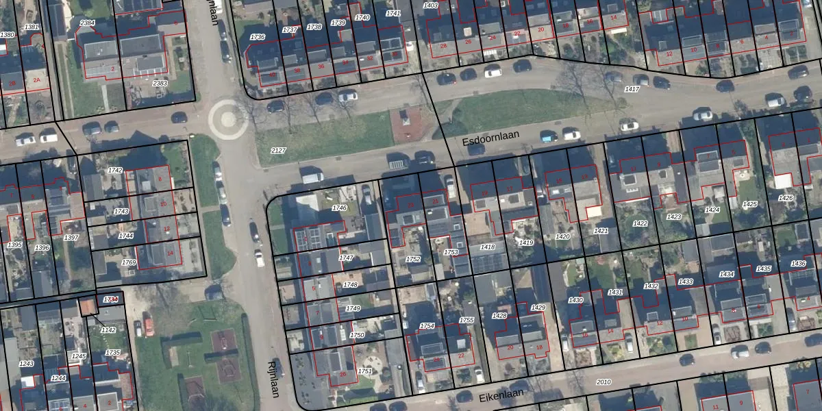 Het perceel waarop Esdoornlaan 23 staat heeft een oppervlakte van 265 m². Dit is een middelgroot perceel. De perceeloppervlakte wordt geregistreerd door het Kadaster. Gedetailleerde informatie over de maten van dit perceel kunt u vinden in het rapport Kadastrale kaart met maatvoering van Esdoornlaan 23.
