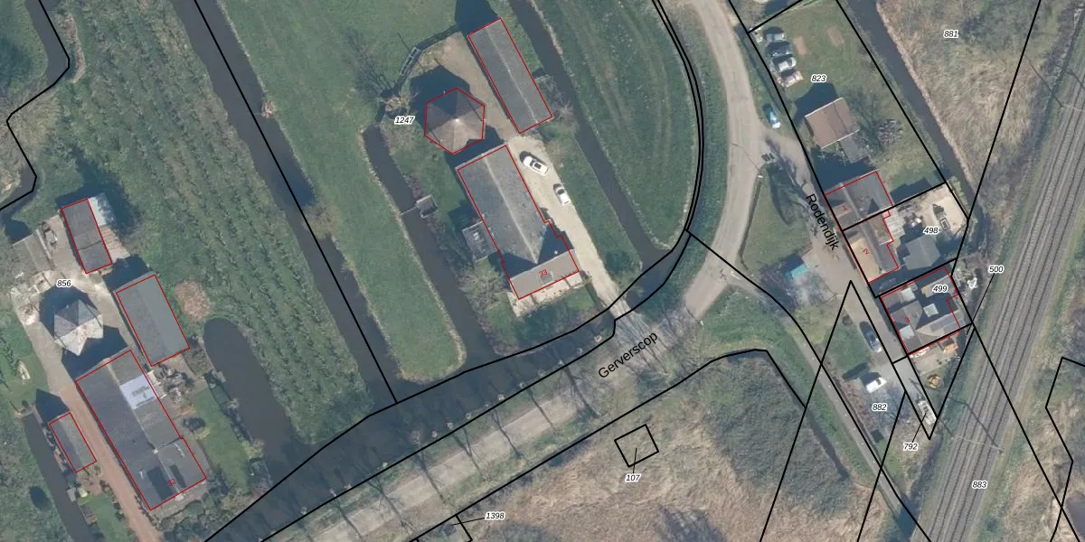 Het perceel waarop Gerverscop 33 staat heeft een oppervlakte van 8410 m². Dit is een zeer groot perceel. De perceeloppervlakte wordt geregistreerd door het Kadaster. Gedetailleerde informatie over de maten van dit perceel kunt u vinden in het rapport Kadastrale kaart met maatvoering van Gerverscop 33.