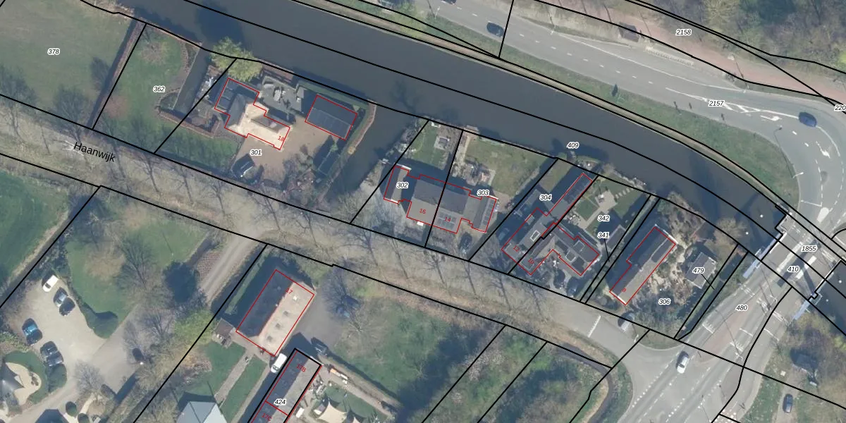 Het perceel waarop Haanwijk 16 staat heeft een oppervlakte van 480 m². Dit is een groot perceel. De perceeloppervlakte wordt geregistreerd door het Kadaster. Gedetailleerde informatie over de maten van dit perceel kunt u vinden in het rapport Kadastrale kaart met maatvoering van Haanwijk 16.