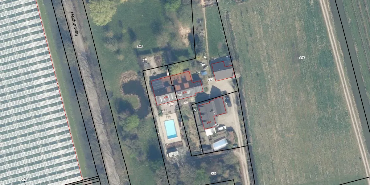 Het perceel waarop Harmelerwaard 20-C staat heeft een oppervlakte van 1695 m². Dit is een zeer groot perceel. De perceeloppervlakte wordt geregistreerd door het Kadaster. Gedetailleerde informatie over de maten van dit perceel kunt u vinden in het rapport Kadastrale kaart met maatvoering van Harmelerwaard 20-C.