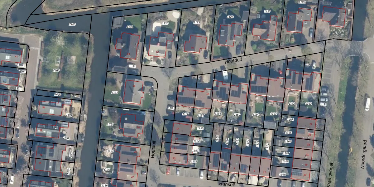 Gebruik de zoekbalk of klik op een perceel voor informatie over de adressen binnen dit perceel.