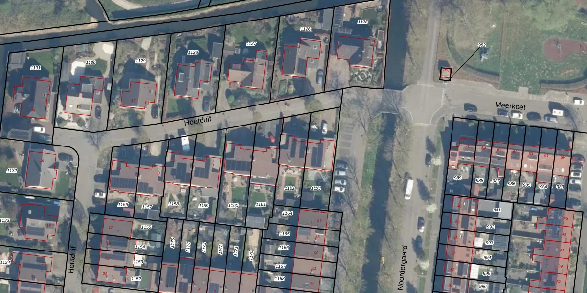 Gebruik de zoekbalk of klik op een perceel voor informatie over de adressen binnen dit perceel.
