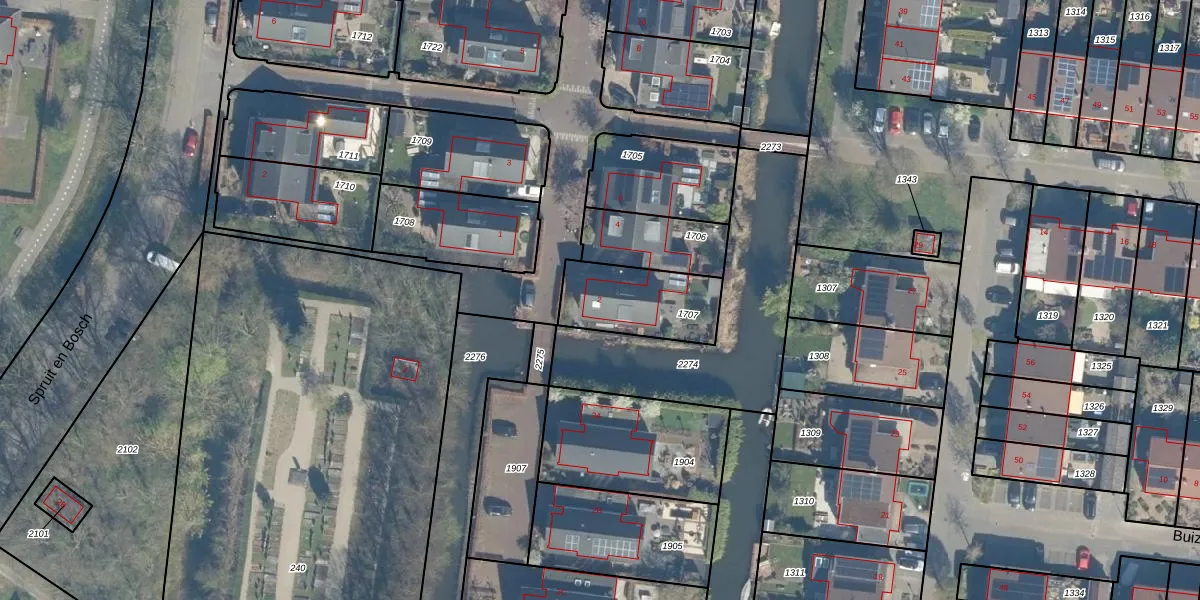 Gebruik de zoekbalk of klik op een perceel voor informatie over de adressen binnen dit perceel.