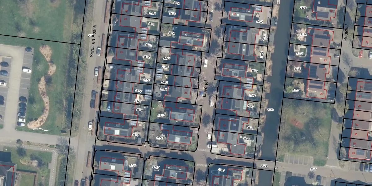 Gebruik de zoekbalk of klik op een perceel voor informatie over de adressen binnen dit perceel.