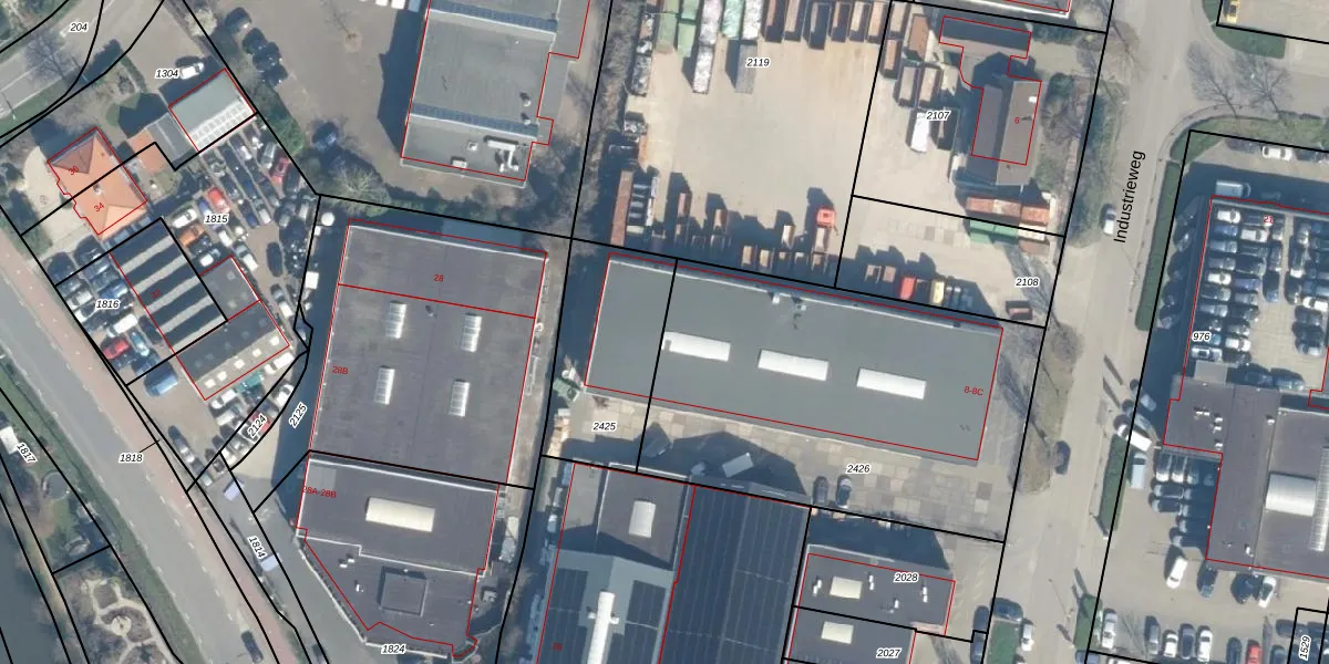 Industrieweg 8-A is gelegen op kadastraal perceel HML01L2426. Deze kadastrale aanduiding is uniek en wordt gebruikt door het Kadaster om eigendomsrechten en andere zakelijke rechten vast te leggen. Het perceel maakt onderdeel uit van de kadastrale gemeente Harmelen.
