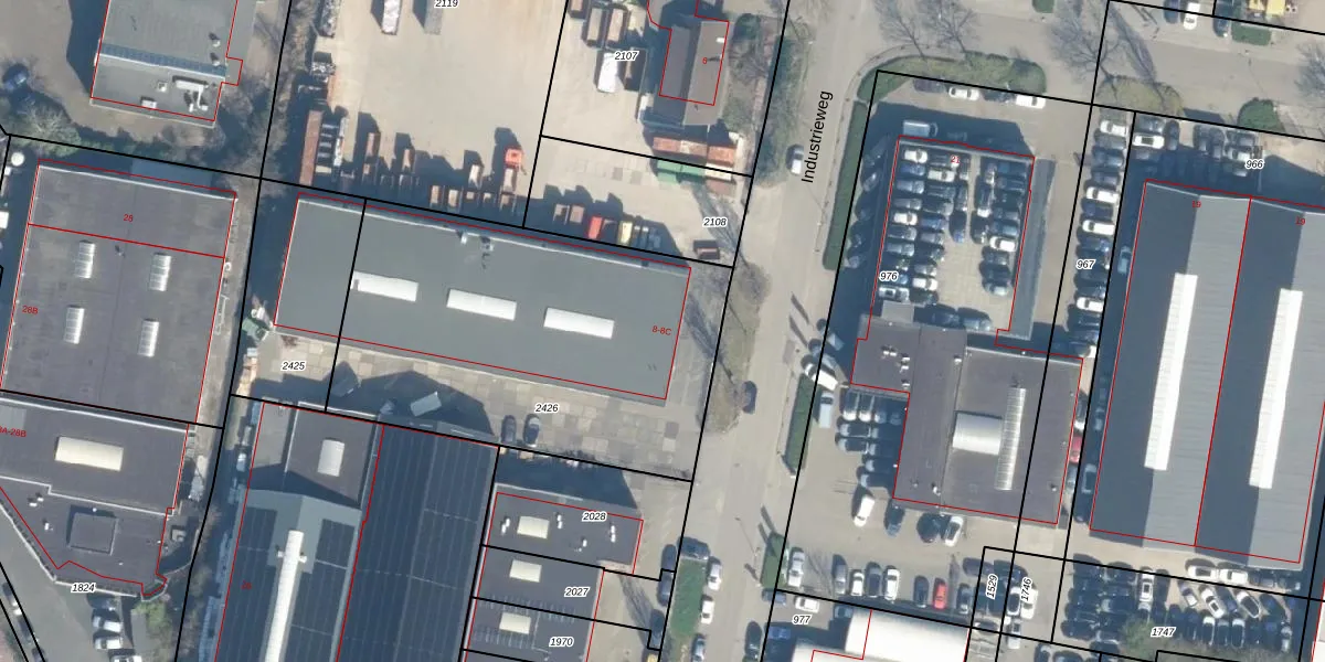 Industrieweg 8 is gelegen op kadastraal perceel HML01L2426. Deze kadastrale aanduiding is uniek en wordt gebruikt door het Kadaster om eigendomsrechten en andere zakelijke rechten vast te leggen. Het perceel maakt onderdeel uit van de kadastrale gemeente Harmelen.