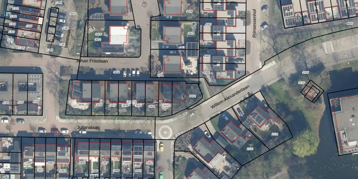 Johan Frisolaan 16 is gelegen op kadastraal perceel HML01B3432. Deze kadastrale aanduiding is uniek en wordt gebruikt door het Kadaster om eigendomsrechten en andere zakelijke rechten vast te leggen. Het perceel maakt onderdeel uit van de kadastrale gemeente Harmelen.