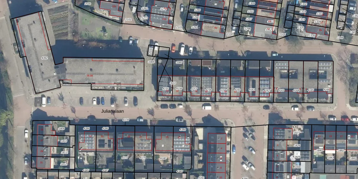 Het perceel waarop Julianalaan 22 staat heeft een oppervlakte van 190 m². Dit is een middelgroot perceel. De perceeloppervlakte wordt geregistreerd door het Kadaster. Gedetailleerde informatie over de maten van dit perceel kunt u vinden in het rapport Kadastrale kaart met maatvoering van Julianalaan 22.