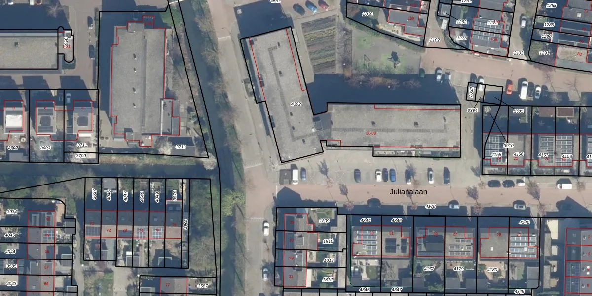 Julianalaan 52 is gelegen op kadastraal perceel HML01B4392. Deze kadastrale aanduiding is uniek en wordt gebruikt door het Kadaster om eigendomsrechten en andere zakelijke rechten vast te leggen. Het perceel maakt onderdeel uit van de kadastrale gemeente Harmelen.