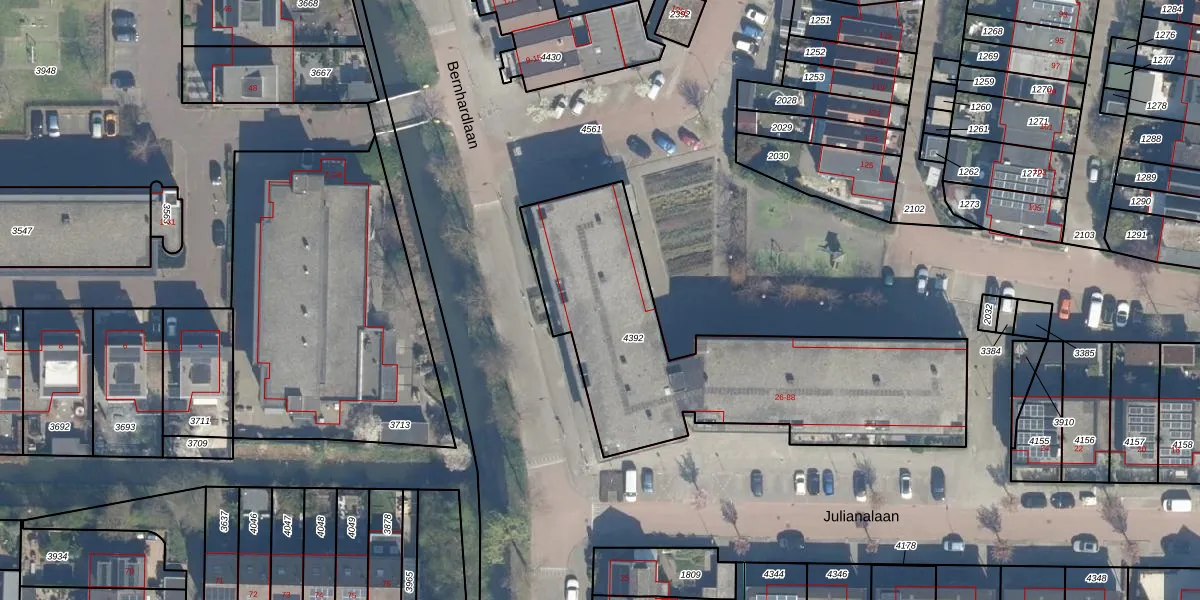 Het perceel waarop Julianalaan 58 staat heeft een oppervlakte van 1499 m². Dit is een zeer groot perceel. De perceeloppervlakte wordt geregistreerd door het Kadaster. Gedetailleerde informatie over de maten van dit perceel kunt u vinden in het rapport Kadastrale kaart met maatvoering van Julianalaan 58.