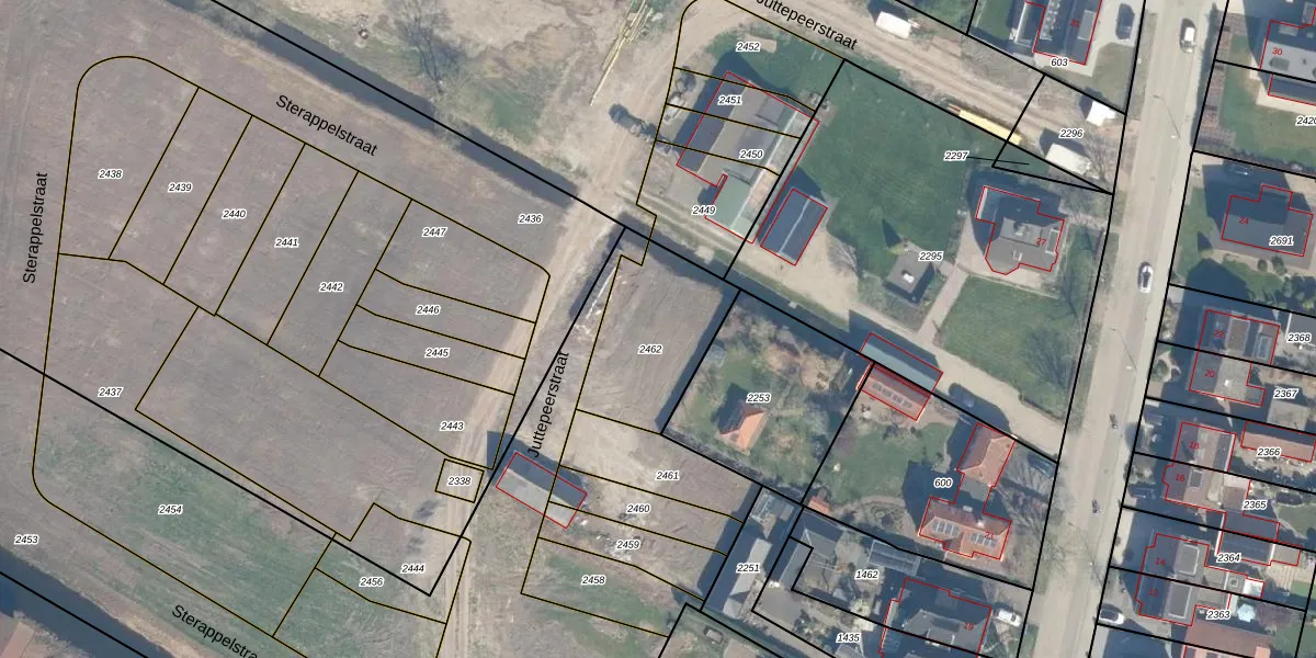 Het perceel waarop Juttepeerstraat 33 staat heeft een oppervlakte van 414 m². Dit is een groot perceel. De perceeloppervlakte wordt geregistreerd door het Kadaster. Gedetailleerde informatie over de maten van dit perceel kunt u vinden in het rapport Kadastrale kaart met maatvoering van Juttepeerstraat 33.
