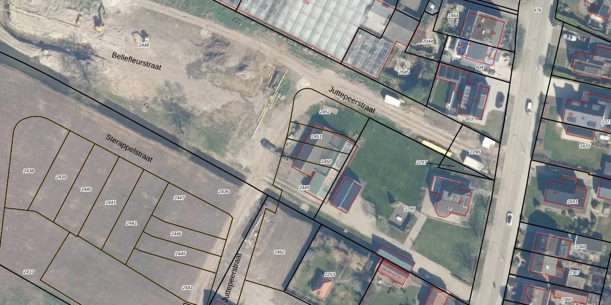 Juttepeerstraat 37 is gelegen op kadastraal perceel HML01L2450. Deze kadastrale aanduiding is uniek en wordt gebruikt door het Kadaster om eigendomsrechten en andere zakelijke rechten vast te leggen. Het perceel maakt onderdeel uit van de kadastrale gemeente Harmelen.