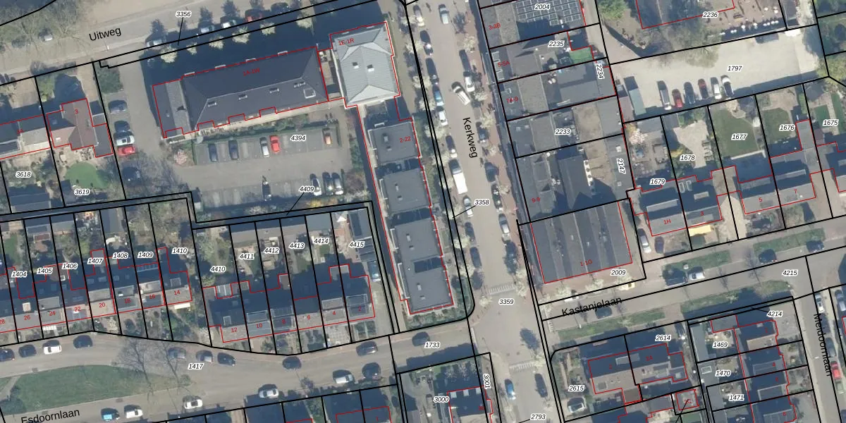 Kerkweg 18 is gelegen op kadastraal perceel HML01B4394. Deze kadastrale aanduiding is uniek en wordt gebruikt door het Kadaster om eigendomsrechten en andere zakelijke rechten vast te leggen. Het perceel maakt onderdeel uit van de kadastrale gemeente Harmelen.