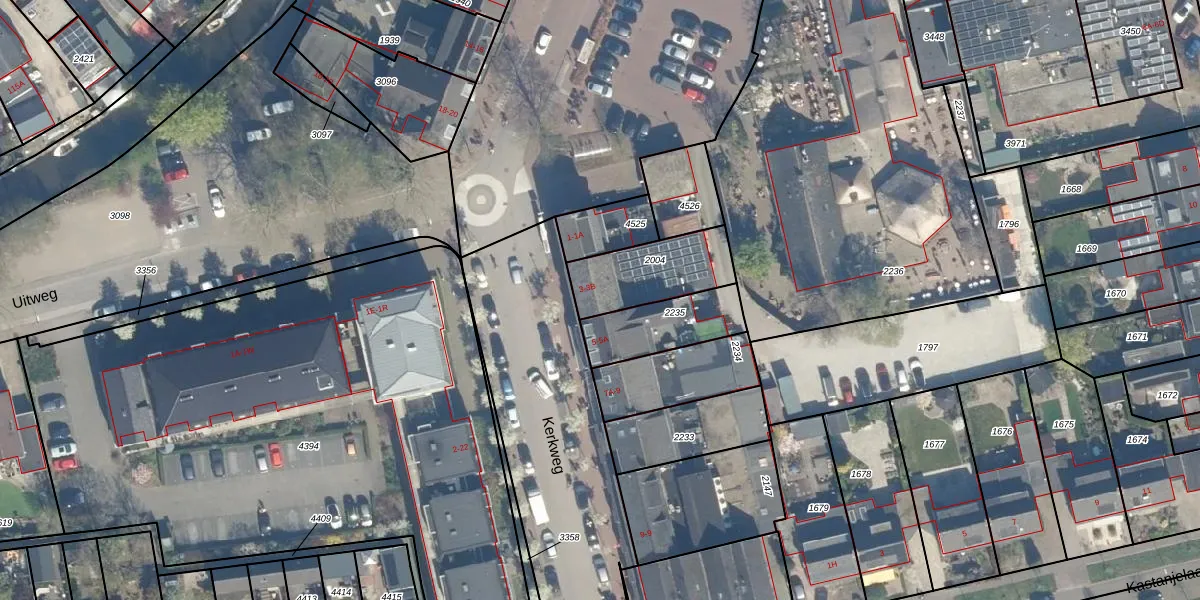 Kerkweg 3-B is gelegen op kadastraal perceel HML01B2004. Deze kadastrale aanduiding is uniek en wordt gebruikt door het Kadaster om eigendomsrechten en andere zakelijke rechten vast te leggen. Het perceel maakt onderdeel uit van de kadastrale gemeente Harmelen.