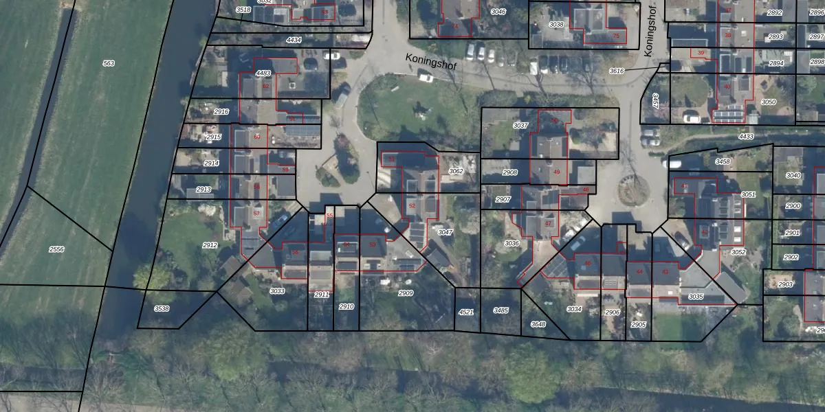 Het perceel waarop Koningshof 52 staat heeft een oppervlakte van 405 m². Dit is een groot perceel. De perceeloppervlakte wordt geregistreerd door het Kadaster. Gedetailleerde informatie over de maten van dit perceel kunt u vinden in het rapport Kadastrale kaart met maatvoering van Koningshof 52.