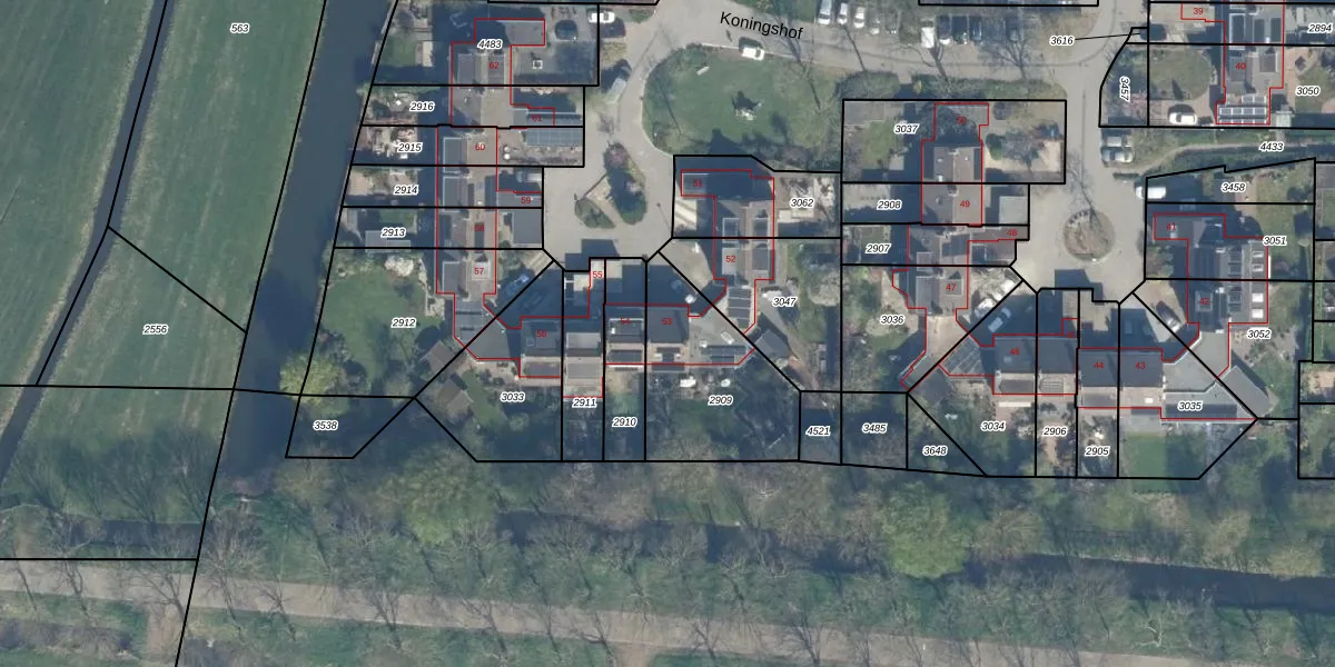 Het perceel waarop Koningshof 53 staat heeft een oppervlakte van 508 m². Dit is een groot perceel. De perceeloppervlakte wordt geregistreerd door het Kadaster. Gedetailleerde informatie over de maten van dit perceel kunt u vinden in het rapport Kadastrale kaart met maatvoering van Koningshof 53.