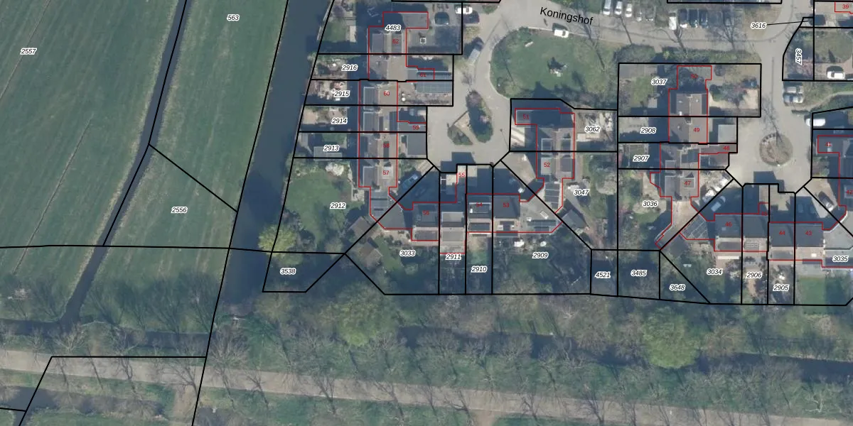 Het perceel waarop Koningshof 56 staat heeft een oppervlakte van 412 m². Dit is een groot perceel. De perceeloppervlakte wordt geregistreerd door het Kadaster. Gedetailleerde informatie over de maten van dit perceel kunt u vinden in het rapport Kadastrale kaart met maatvoering van Koningshof 56.