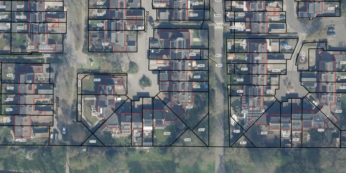 Het perceel waarop Koningshof 9 staat heeft een oppervlakte van 176 m². Dit is een middelgroot perceel. De perceeloppervlakte wordt geregistreerd door het Kadaster. Gedetailleerde informatie over de maten van dit perceel kunt u vinden in het rapport Kadastrale kaart met maatvoering van Koningshof 9.