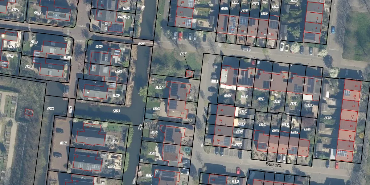 Gebruik de zoekbalk of klik op een perceel voor informatie over de adressen binnen dit perceel.