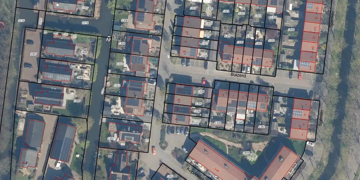 Gebruik de zoekbalk of klik op een perceel voor informatie over de adressen binnen dit perceel.