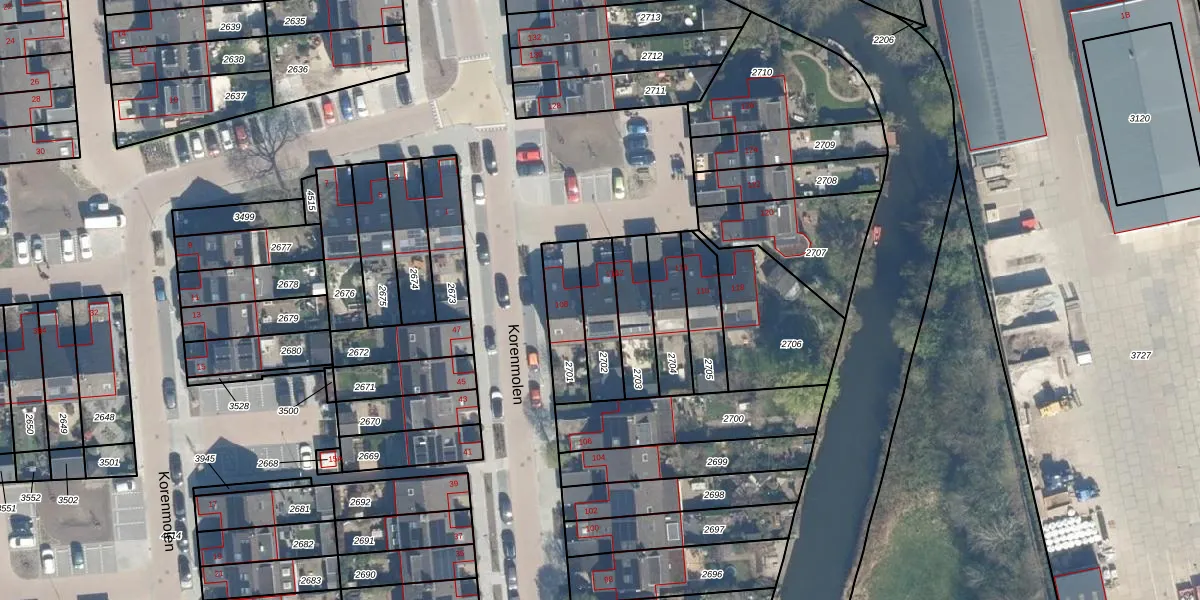 Het perceel waarop Korenmolen 110 staat heeft een oppervlakte van 156 m². Dit is een middelgroot perceel. De perceeloppervlakte wordt geregistreerd door het Kadaster. Gedetailleerde informatie over de maten van dit perceel kunt u vinden in het rapport Kadastrale kaart met maatvoering van Korenmolen 110.