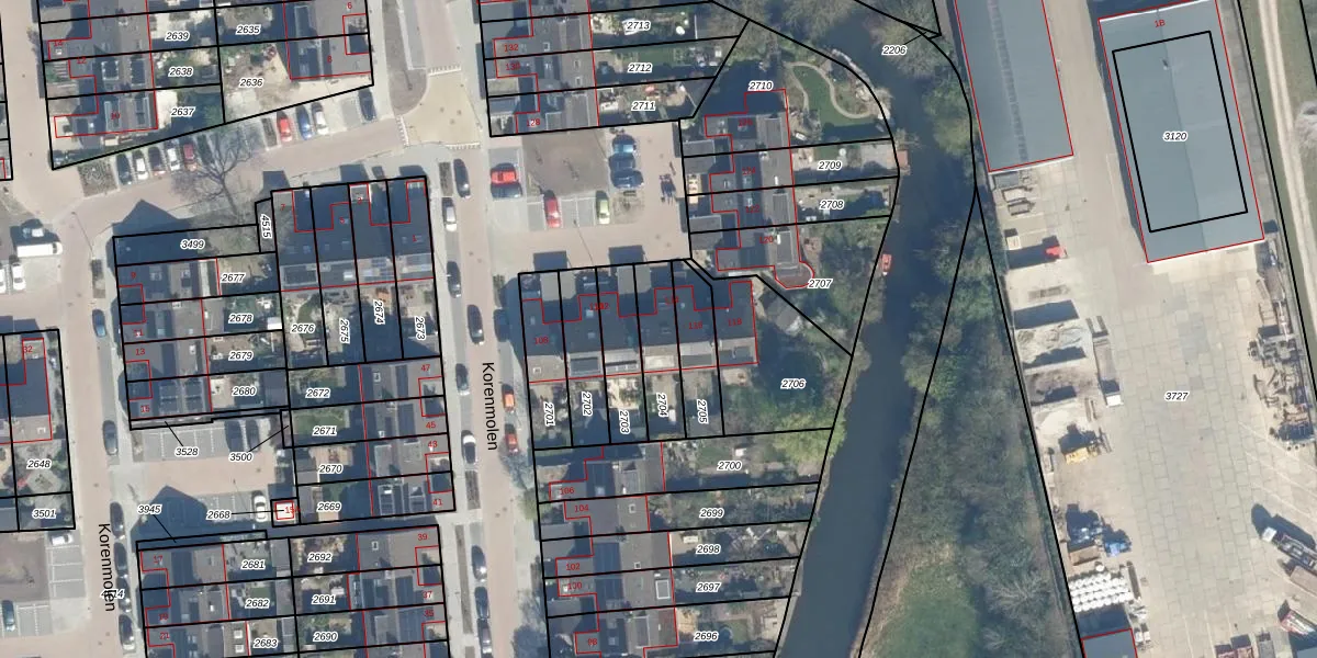 Het perceel waarop Korenmolen 114 staat heeft een oppervlakte van 156 m². Dit is een middelgroot perceel. De perceeloppervlakte wordt geregistreerd door het Kadaster. Gedetailleerde informatie over de maten van dit perceel kunt u vinden in het rapport Kadastrale kaart met maatvoering van Korenmolen 114.