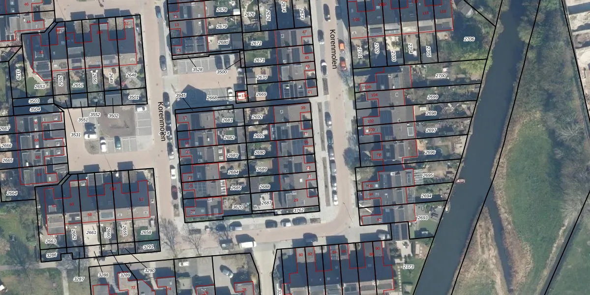 Het perceel waarop Korenmolen 35 staat heeft een oppervlakte van 131 m². Dit is een middelgroot perceel. De perceeloppervlakte wordt geregistreerd door het Kadaster. Gedetailleerde informatie over de maten van dit perceel kunt u vinden in het rapport Kadastrale kaart met maatvoering van Korenmolen 35.