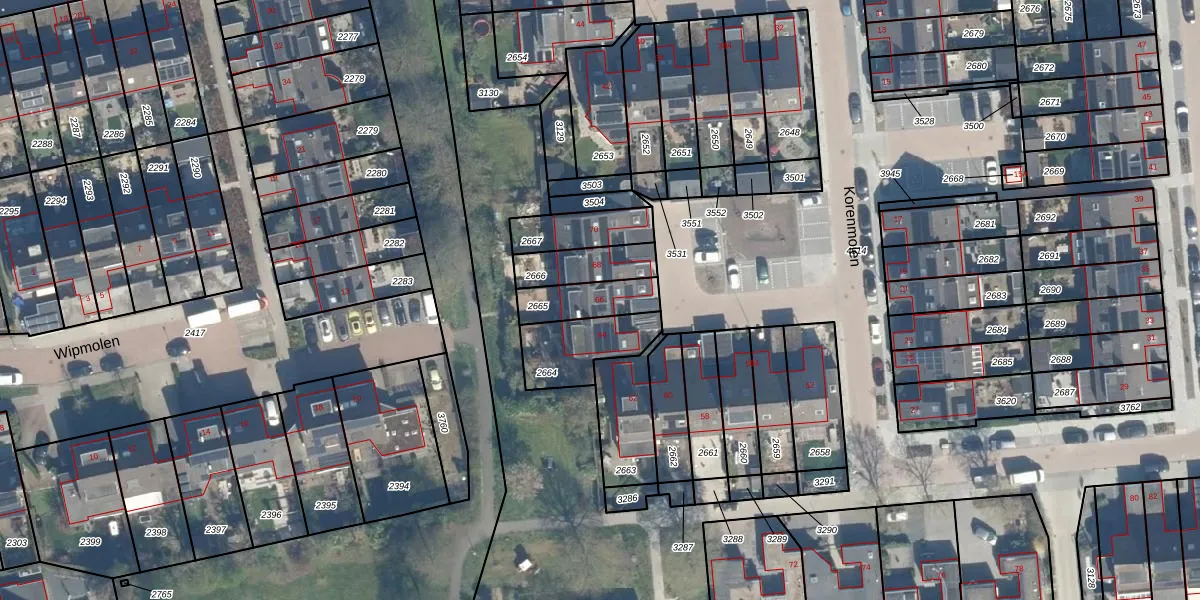 Gebruik de zoekbalk of klik op een perceel voor informatie over de adressen binnen dit perceel.