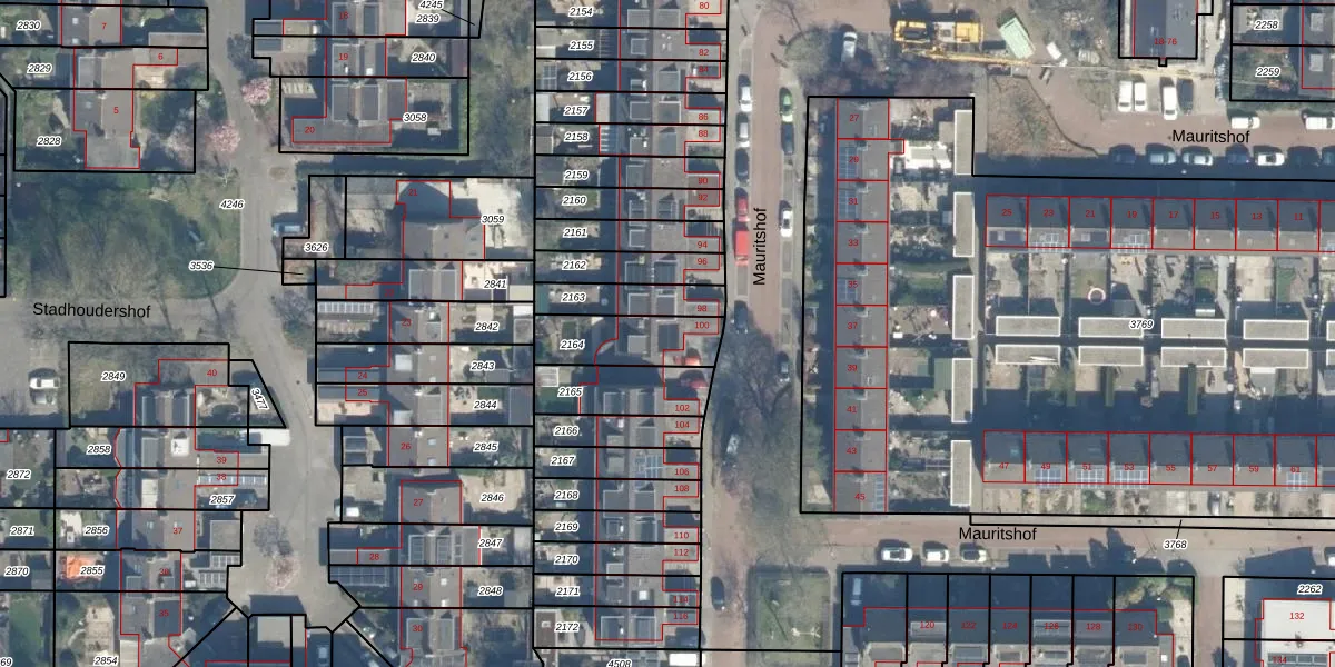 Het perceel waarop Mauritshof 100 staat heeft een oppervlakte van 205 m². Dit is een middelgroot perceel. De perceeloppervlakte wordt geregistreerd door het Kadaster. Gedetailleerde informatie over de maten van dit perceel kunt u vinden in het rapport Kadastrale kaart met maatvoering van Mauritshof 100.