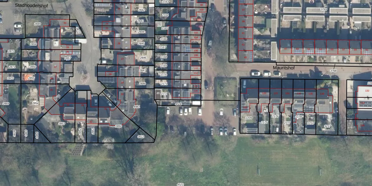 Het perceel waarop Mauritshof 116 staat heeft een oppervlakte van 154 m². Dit is een middelgroot perceel. De perceeloppervlakte wordt geregistreerd door het Kadaster. Gedetailleerde informatie over de maten van dit perceel kunt u vinden in het rapport Kadastrale kaart met maatvoering van Mauritshof 116.