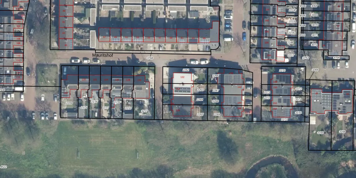 Het perceel waarop Mauritshof 134 staat heeft een oppervlakte van 152 m². Dit is een middelgroot perceel. De perceeloppervlakte wordt geregistreerd door het Kadaster. Gedetailleerde informatie over de maten van dit perceel kunt u vinden in het rapport Kadastrale kaart met maatvoering van Mauritshof 134.
