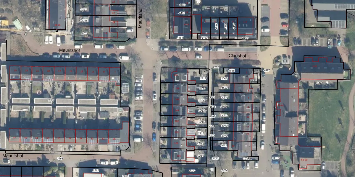 Het perceel waarop Mauritshof 168 staat heeft een oppervlakte van 169 m². Dit is een middelgroot perceel. De perceeloppervlakte wordt geregistreerd door het Kadaster. Gedetailleerde informatie over de maten van dit perceel kunt u vinden in het rapport Kadastrale kaart met maatvoering van Mauritshof 168.