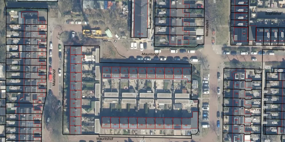 Het perceel waarop Mauritshof 17 staat heeft een oppervlakte van 4932 m². Dit is een zeer groot perceel. De perceeloppervlakte wordt geregistreerd door het Kadaster. Gedetailleerde informatie over de maten van dit perceel kunt u vinden in het rapport Kadastrale kaart met maatvoering van Mauritshof 17.