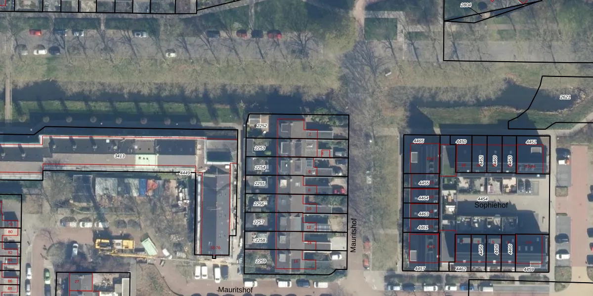 Het perceel waarop Mauritshof 4 staat heeft een oppervlakte van 217 m². Dit is een middelgroot perceel. De perceeloppervlakte wordt geregistreerd door het Kadaster. Gedetailleerde informatie over de maten van dit perceel kunt u vinden in het rapport Kadastrale kaart met maatvoering van Mauritshof 4.