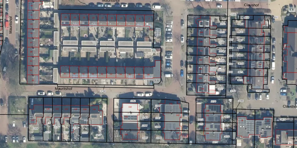 Het perceel waarop Mauritshof 65 staat heeft een oppervlakte van 4932 m². Dit is een zeer groot perceel. De perceeloppervlakte wordt geregistreerd door het Kadaster. Gedetailleerde informatie over de maten van dit perceel kunt u vinden in het rapport Kadastrale kaart met maatvoering van Mauritshof 65.